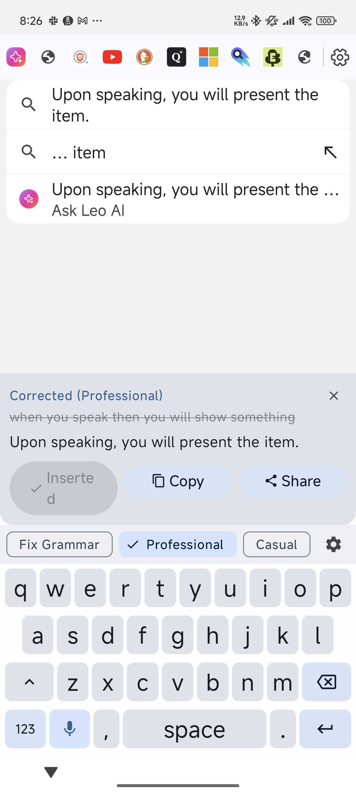 - Correction preview with actions: Insert / Copy / Share / Dismiss