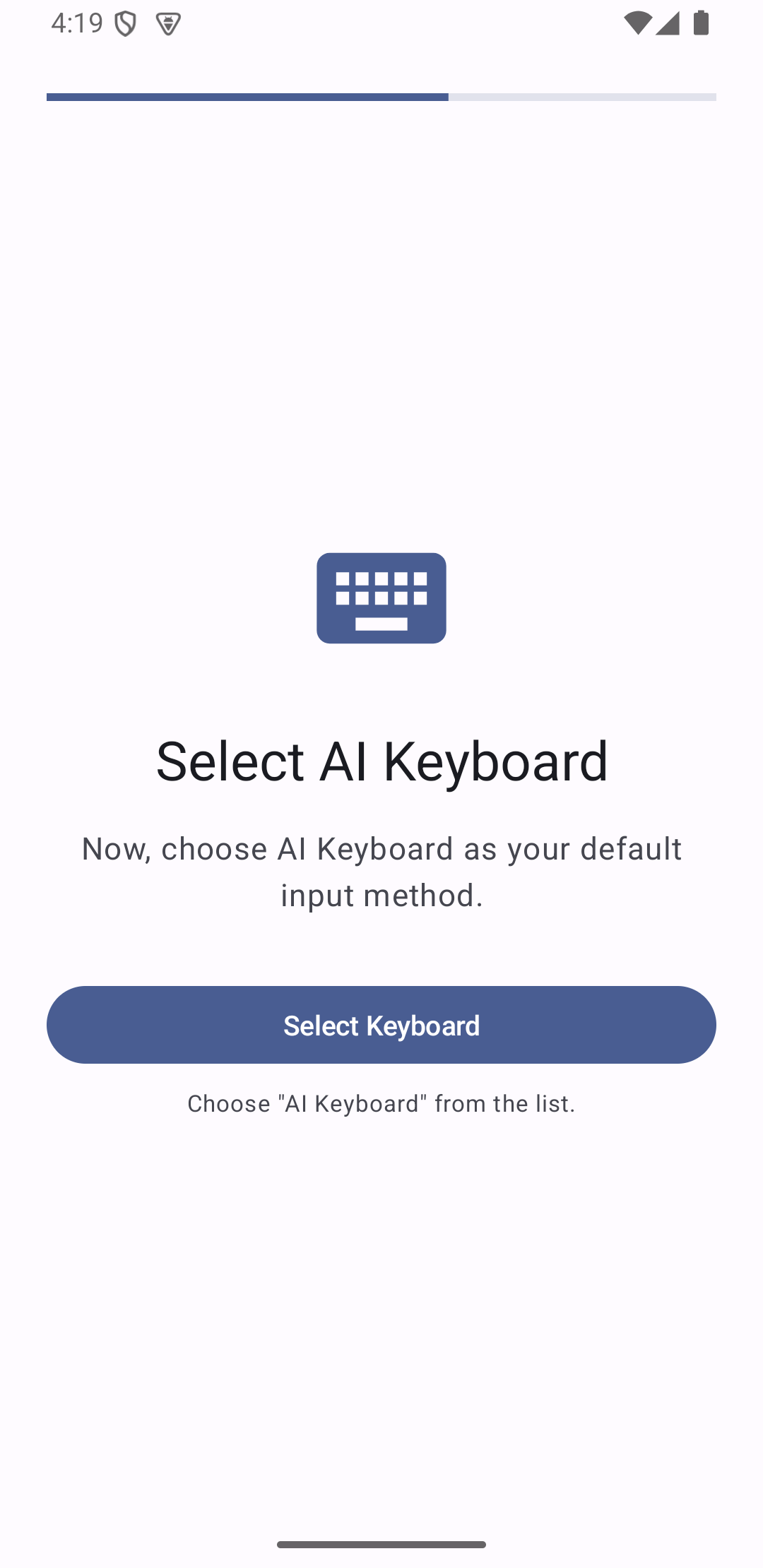 Tap Select Keyboard, then choose AI Keyboard from the system picker.