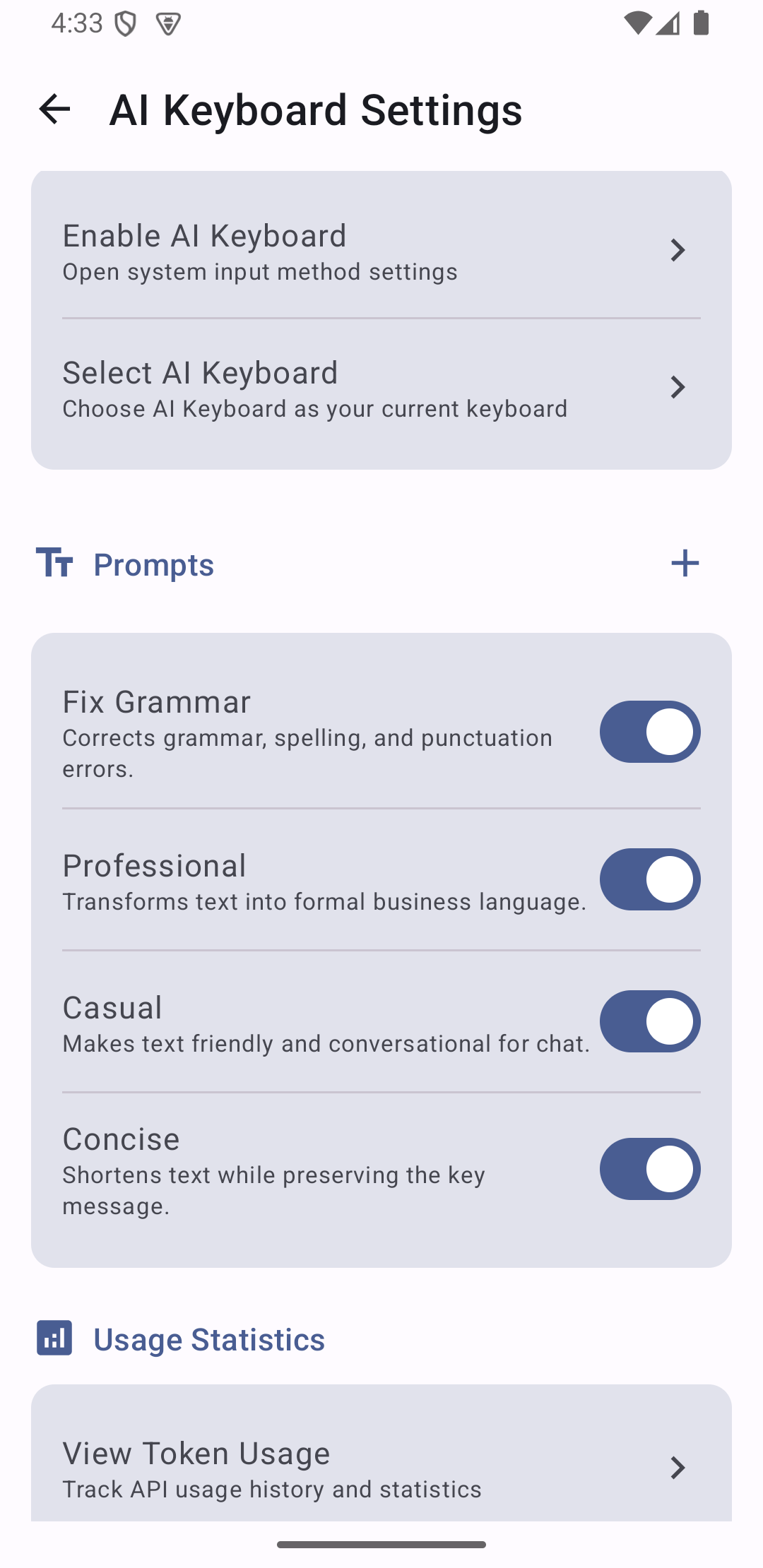 Follow the wizard and enable AI Keyboard in your device’s input method settings.