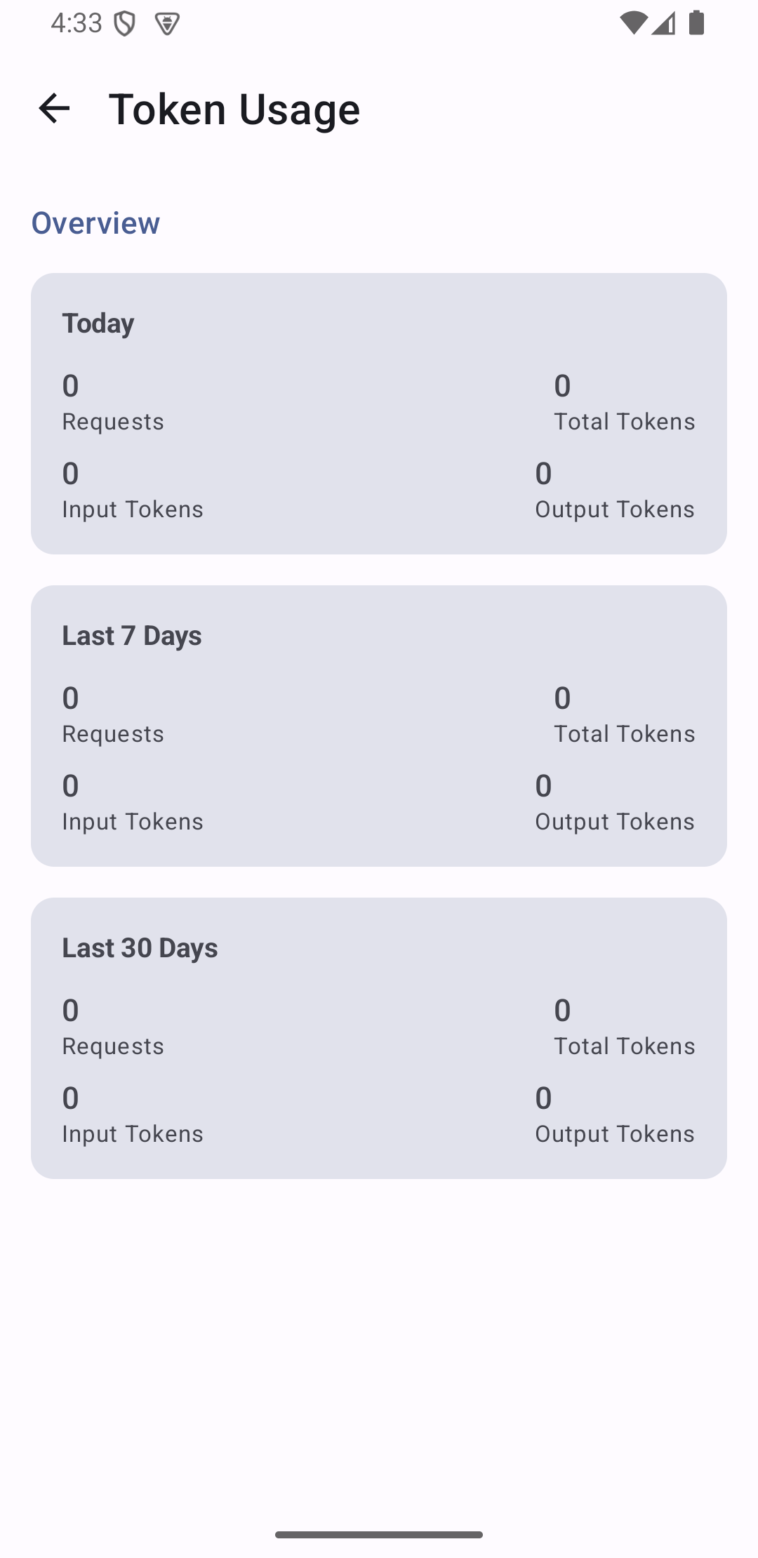 - Token usage statistics stored locally on-device